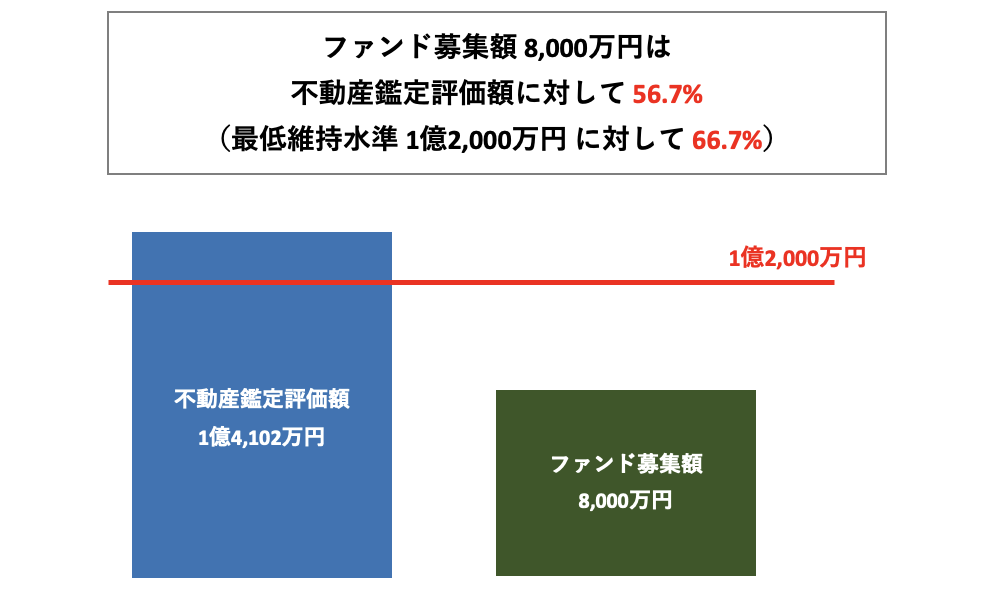 本ファンドの募集金額8,000万円は、不動産鑑定評価額の56.7%となります。