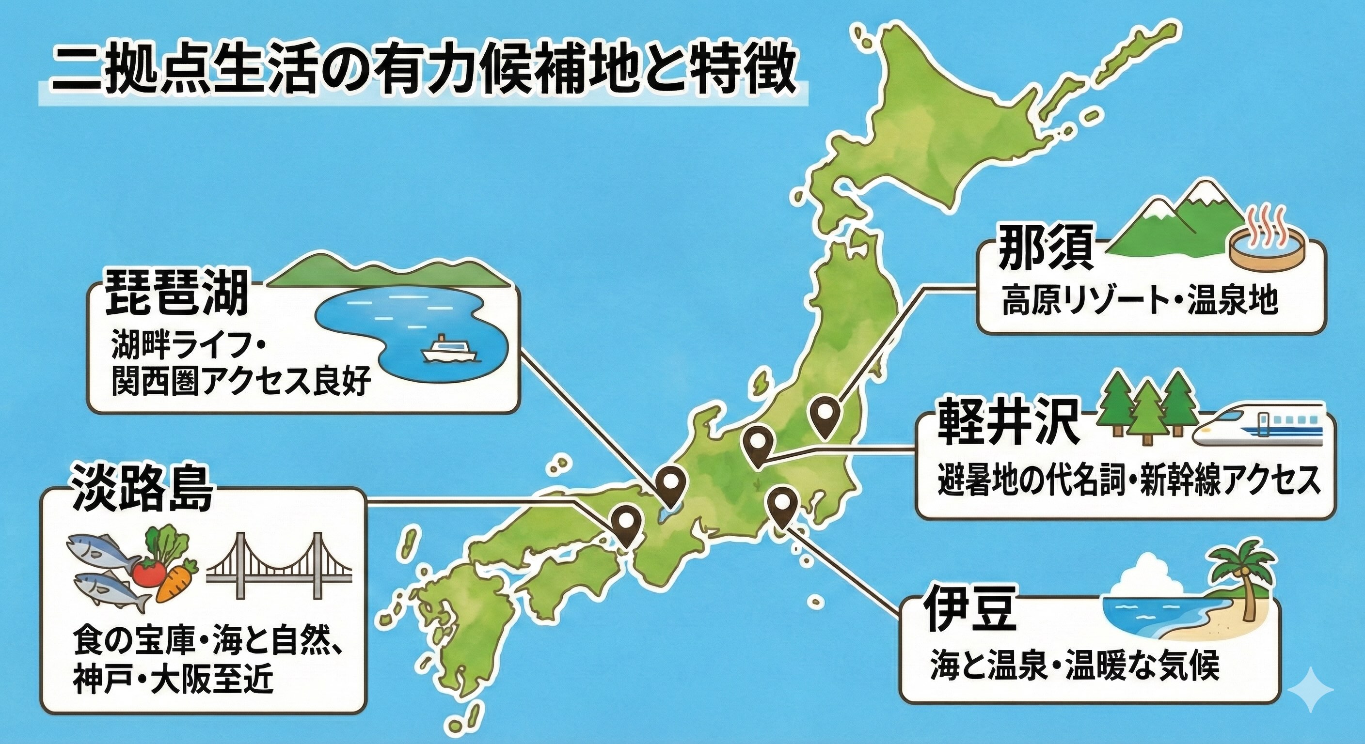 さらに、これらのエリアは観光地としての知名度も高く、民泊運用との相性が極めて良い点も見逃せません。二拠点居住として利用しない期間は民泊として貸し出すことで、遊休時間を収益化できるモデルは、所有者側にとって合理性が高く、近年ニーズが拡大しています。観光需要が見込める立地においては、短期滞在・中長期滞在の双方に対応できる柔軟な運用が可能となり、収益機会の幅を広げることが期待されます。